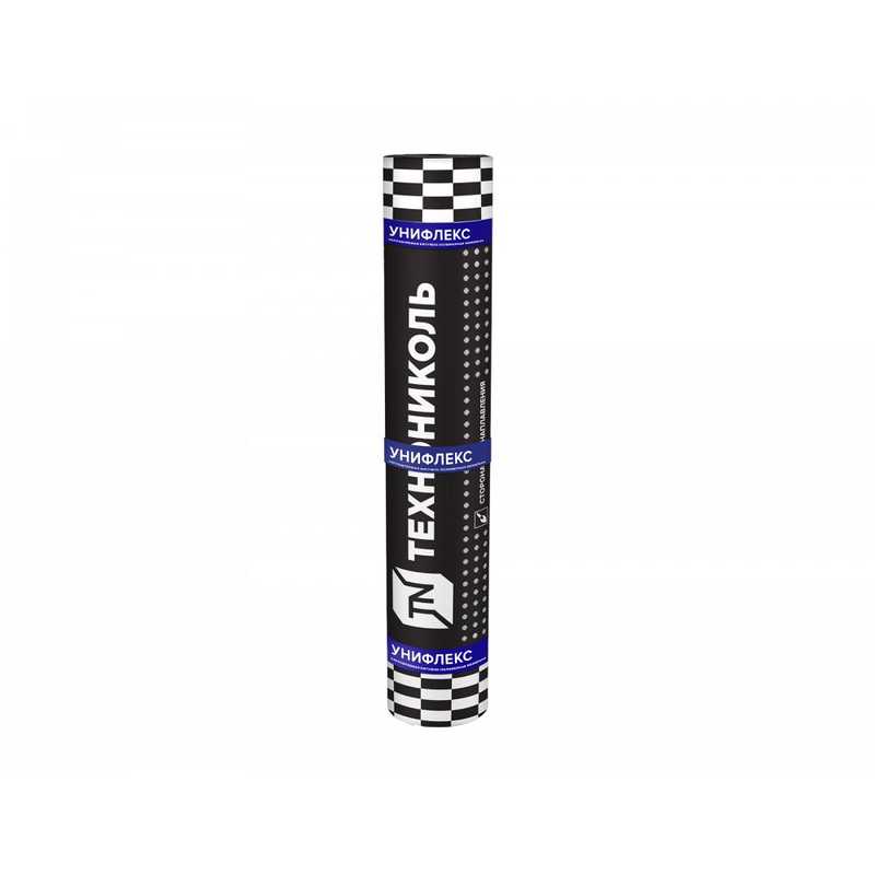 Унифлекс П — с полимерной пленкой с обеих сторон полотна; применяется для устройства нижних слоев в многослойной гидроизоляции строительных конструкций.