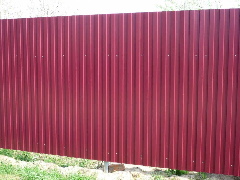 Профилированный лист С-8x1150-A (ПЭ-01-3005-0,45) часто используется в Мурино для обустройства забора. Изначально он представляет собой стальной оцинкованный лист с покрытием. Толщина металла с цинковым и защитно-декоративным слоем — 0.45 мм.Проходя процедуру холодного проката, сталь принимает волнообразный вид. Такая форма придает профилю несущую способность.